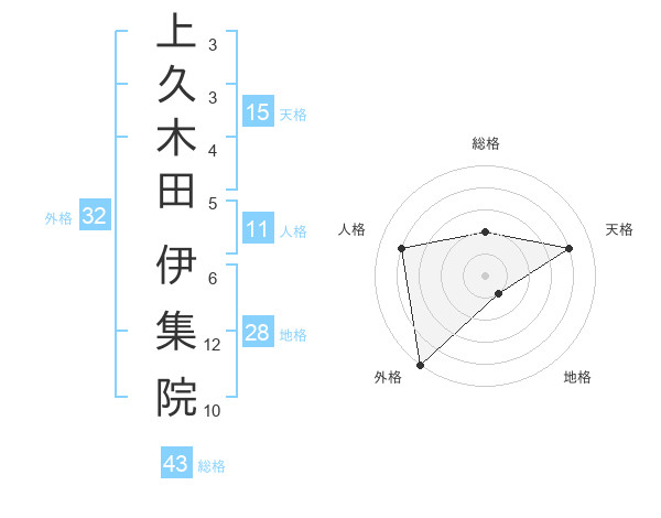 上久木田 伊集院さんの総格は43画の2点