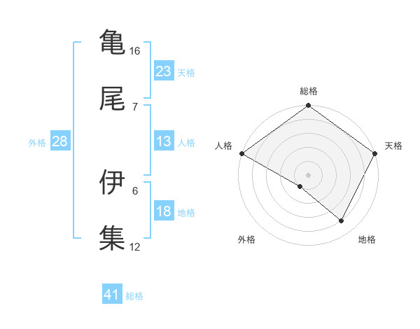 亀尾 伊集さんを姓名の画数から五運を鑑定