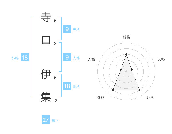 寺口 伊集さんの総格は27画の3点!