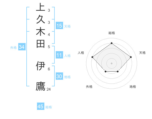 上久木田 伊鷹さんを姓名の画数から五運を鑑定
