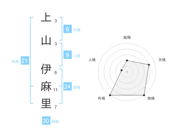 上山 伊麻里さんを姓名の画数から五運を鑑定