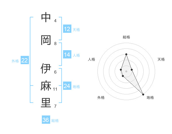 中岡 伊麻里さんを姓名の画数から五運を鑑定