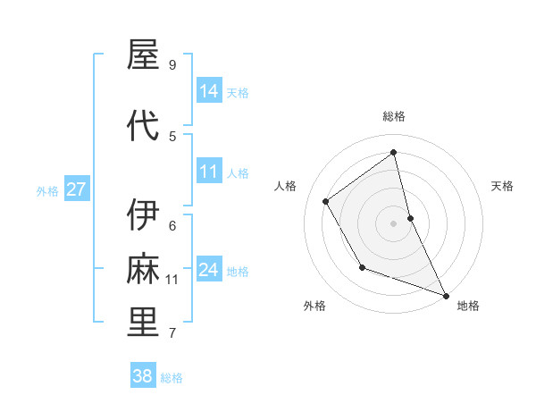 屋代 伊麻里さんの総格は38画の4点!