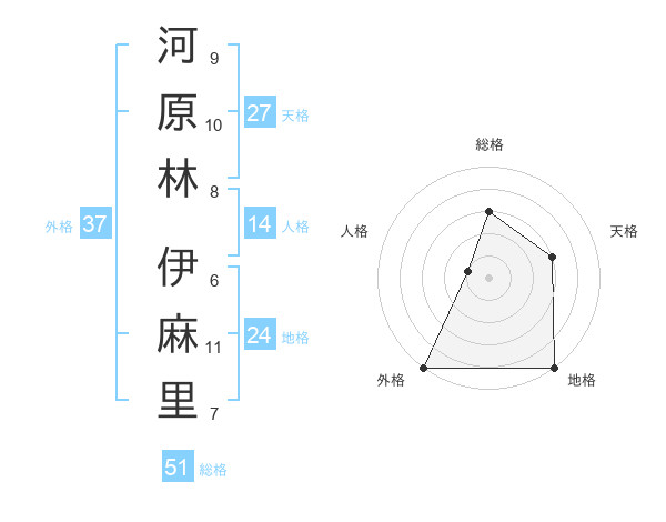 河原林 伊麻里さんを姓名の画数から五運を鑑定