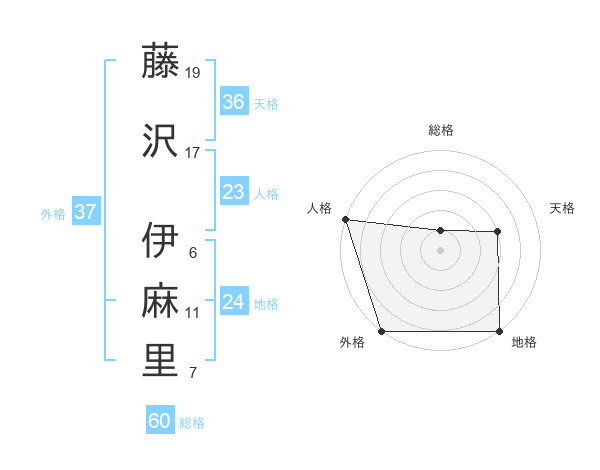 藤沢 伊麻里さんの外格は37画の5点!