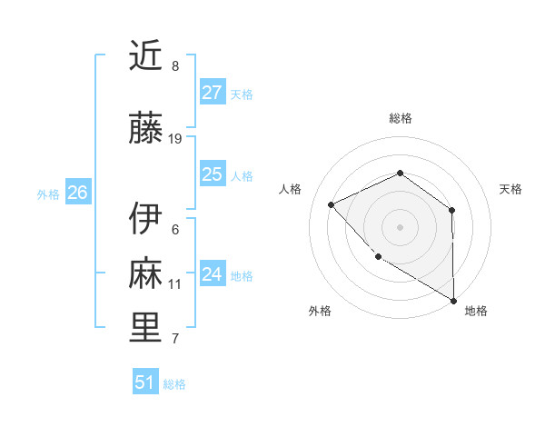近藤 伊麻里さんの総格は51画の3点!