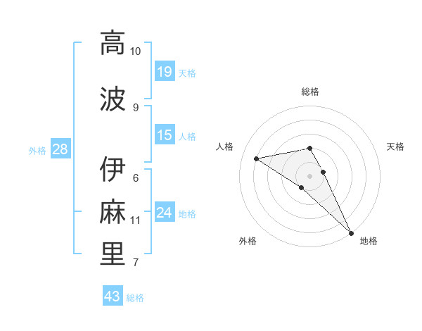高波 伊麻里さんの総格は43画の2点