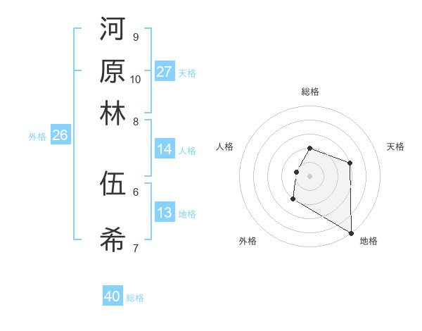 河原林 伍希さんを姓名の画数から五運を鑑定
