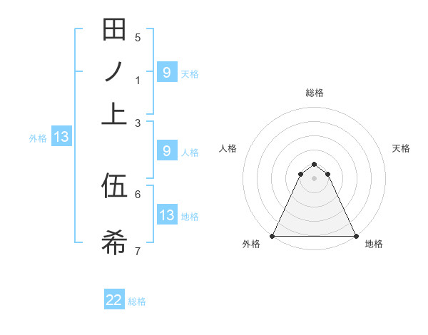 田ノ上 伍希さんを姓名の画数から五運を鑑定