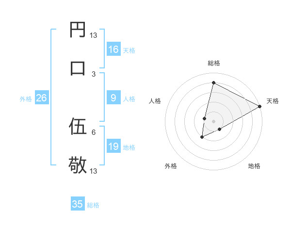 円口 伍敬さんを姓名の画数から五運を鑑定