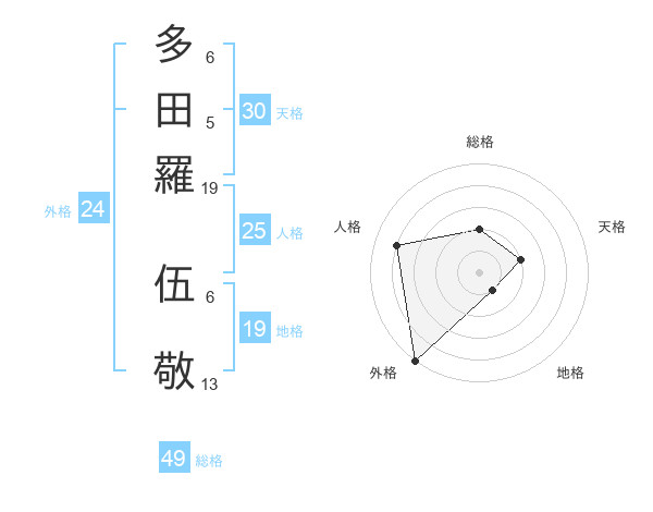 多田羅 伍敬さんを姓名の画数から五運を鑑定
