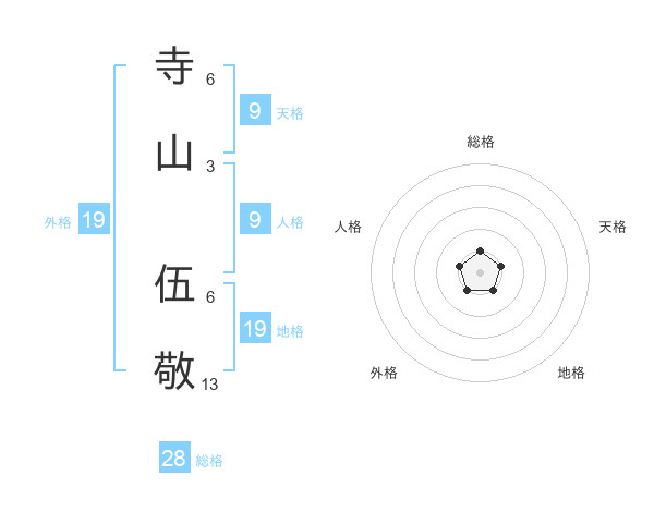 寺山 伍敬さんの総格は28画の1点!