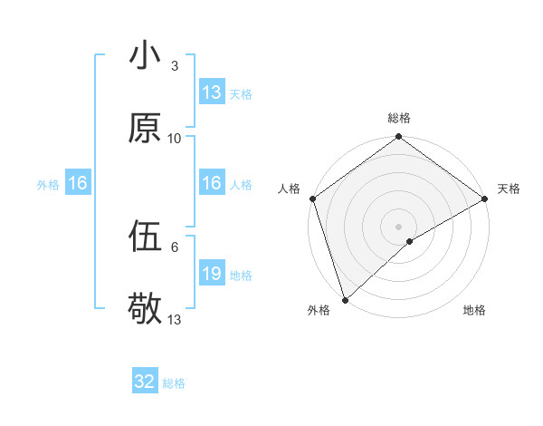 小原 伍敬さんを姓名の画数から五運を鑑定