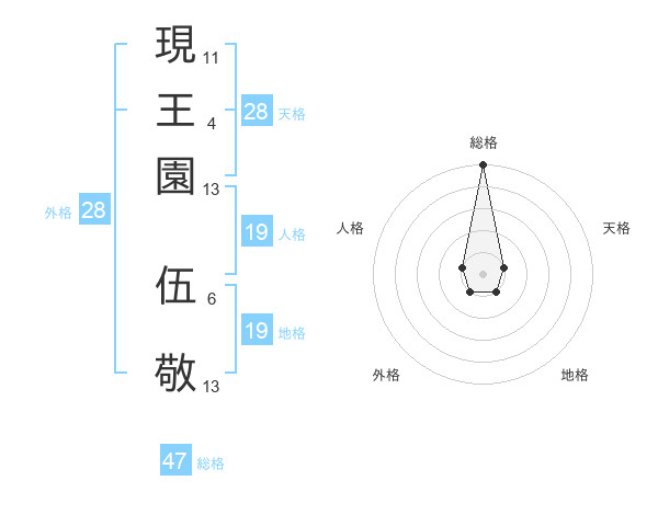 現王園 伍敬さんを姓名の画数から五運を鑑定