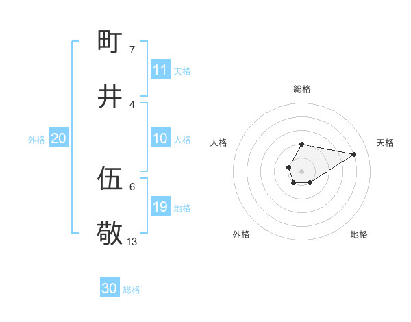 町井 伍敬さんを姓名の画数から五運を鑑定