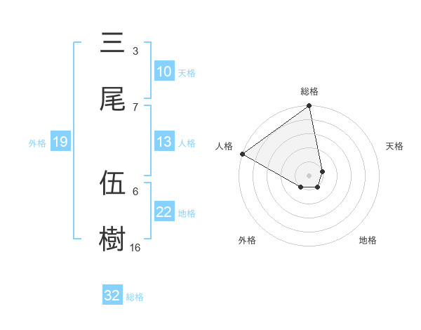 三尾 伍樹さんを姓名の画数から五運を鑑定