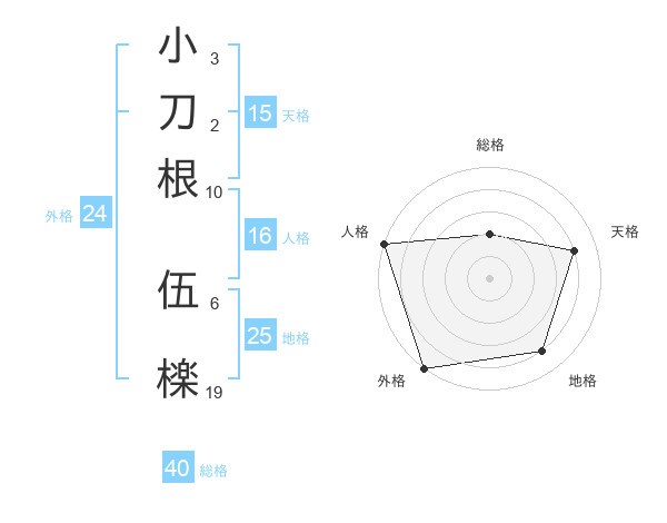 小刀根 伍檪さんを姓名の画数から五運を鑑定