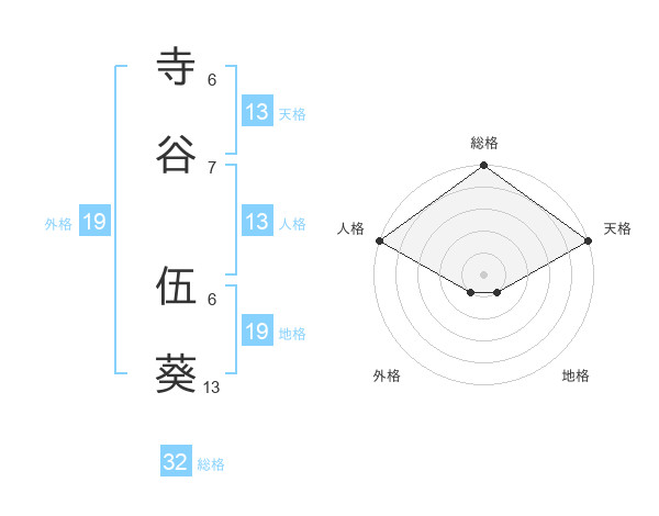 寺谷 伍葵さんの総格は32画の5点!