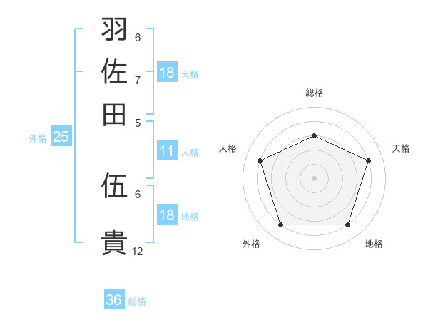 羽佐田 伍貴さんを姓名の画数から五運を鑑定