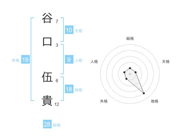 谷口 伍貴さんの総格は28画の1点!