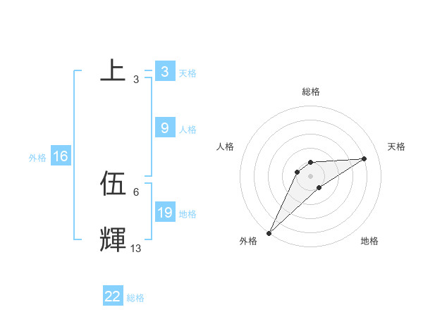 上 伍輝さんの総格は22画の1点!
