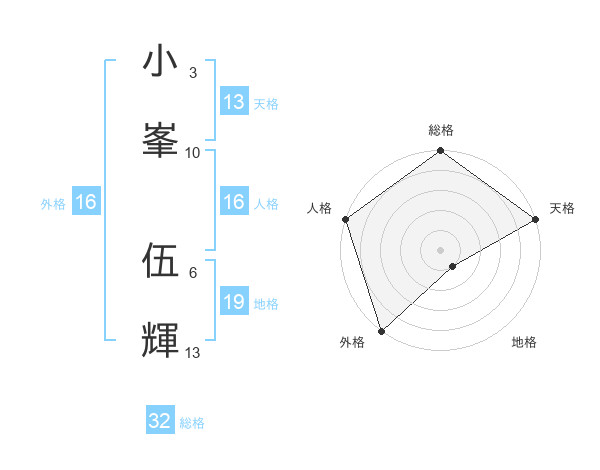 小峯 伍輝さんの総格は32画の5点!