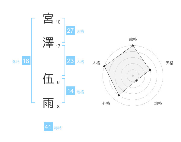 宮澤 伍雨さんを姓名の画数から五運を鑑定