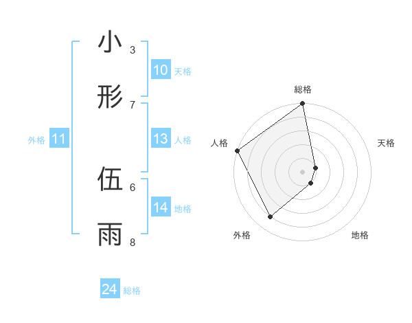 小形 伍雨さんを姓名の画数から五運を鑑定