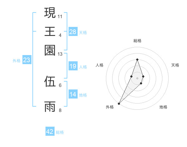 現王園 伍雨さんを姓名の画数から五運を鑑定