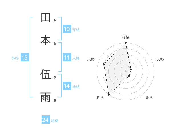田本 伍雨さんの総格は24画の5点!