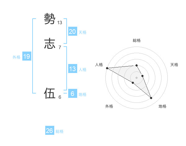 勢志 伍さんの総格は26画の2点!