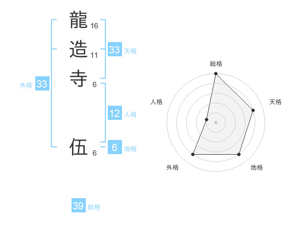 龍造寺 伍さんの外格は33画の4点!