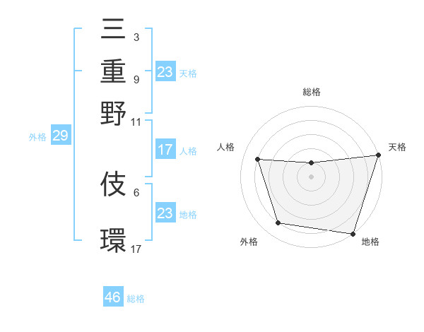 三重野 伎環さんを姓名の画数から五運を鑑定