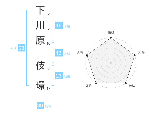 下川原 伎環さんの総格は39画の5点!