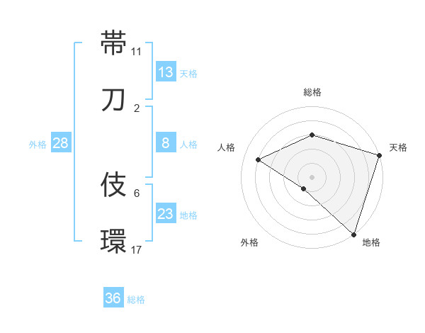 帯刀 伎環さんを姓名の画数から五運を鑑定