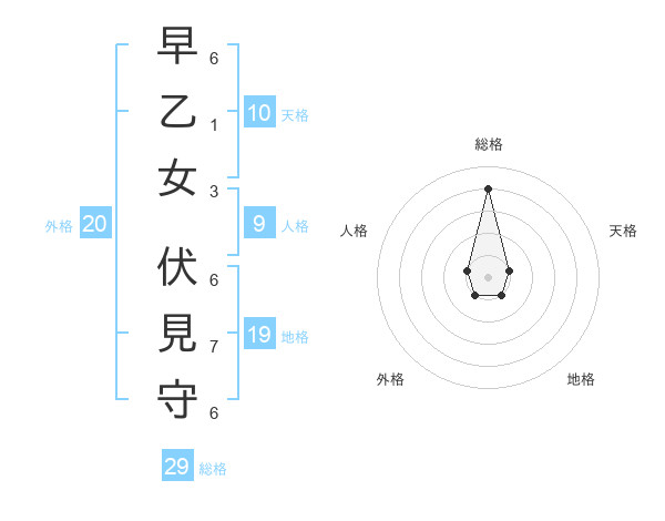 早乙女 伏見守さんを姓名の画数から五運を鑑定