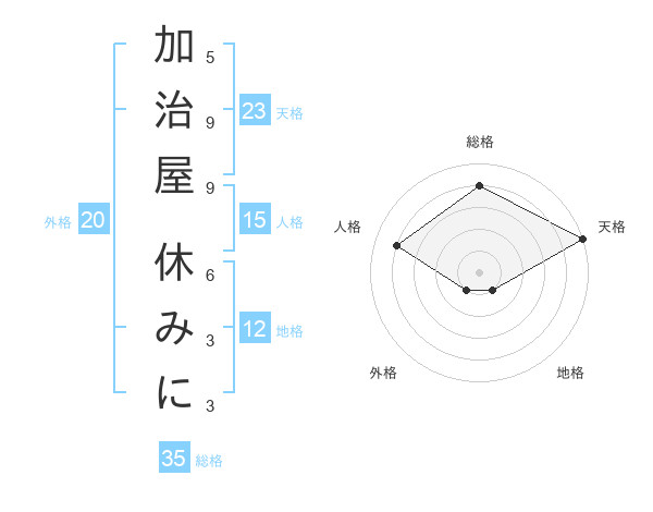 加治屋 休みにさんを姓名の画数から五運を鑑定