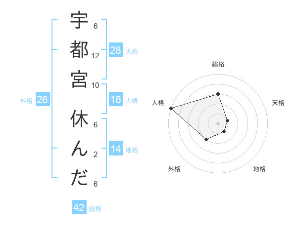 宇都宮 休んださんを姓名の画数から五運を鑑定