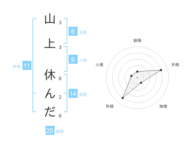 山上 休んださんの総格は20画の1点!