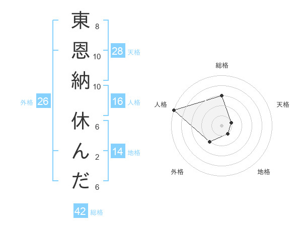 東恩納 休んださんの人格は16画の5点!