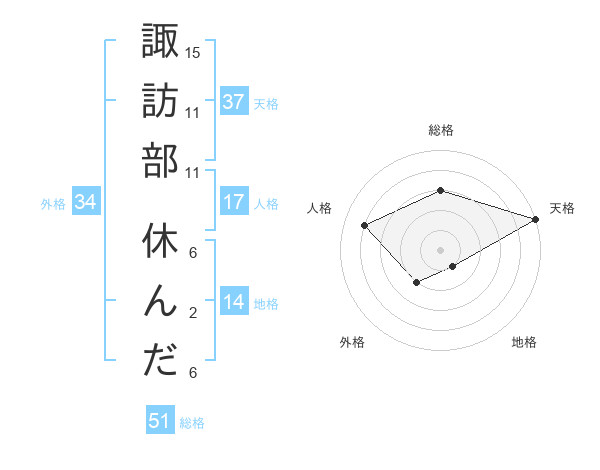 諏訪部 休んださんを姓名の画数から五運を鑑定