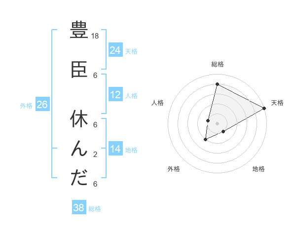 豊臣 休んださんを姓名の画数から五運を鑑定