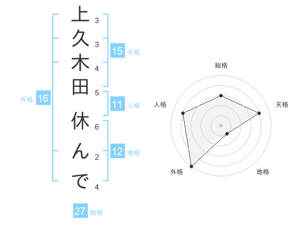 上久木田 休んでさんを姓名の画数から五運を鑑定