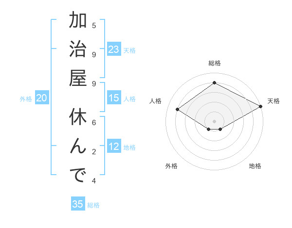 加治屋 休んでさんの天格は23画の5点!