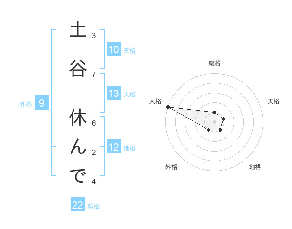 土谷 休んでさんを姓名の画数から五運を鑑定