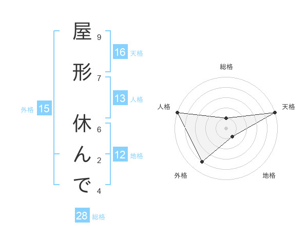 屋形 休んでさんを姓名の画数から五運を鑑定