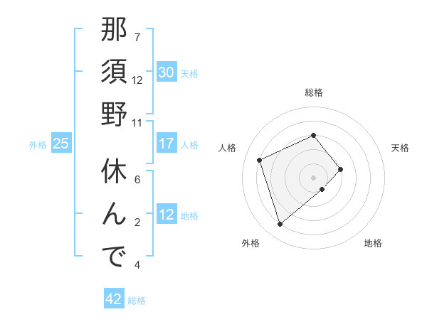那須野 休んでさんを姓名の画数から五運を鑑定