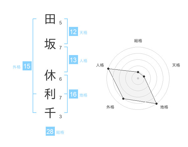 田坂 休利千さんを姓名の画数から五運を鑑定