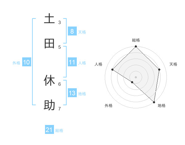 土田 休助さんの総格は21画の5点!