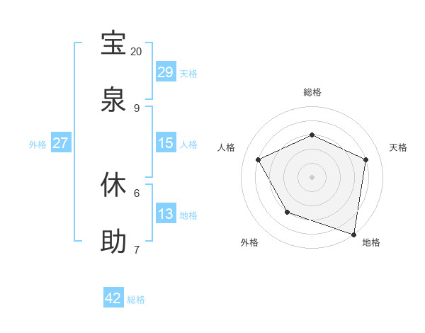 宝泉 休助さんを姓名の画数から五運を鑑定